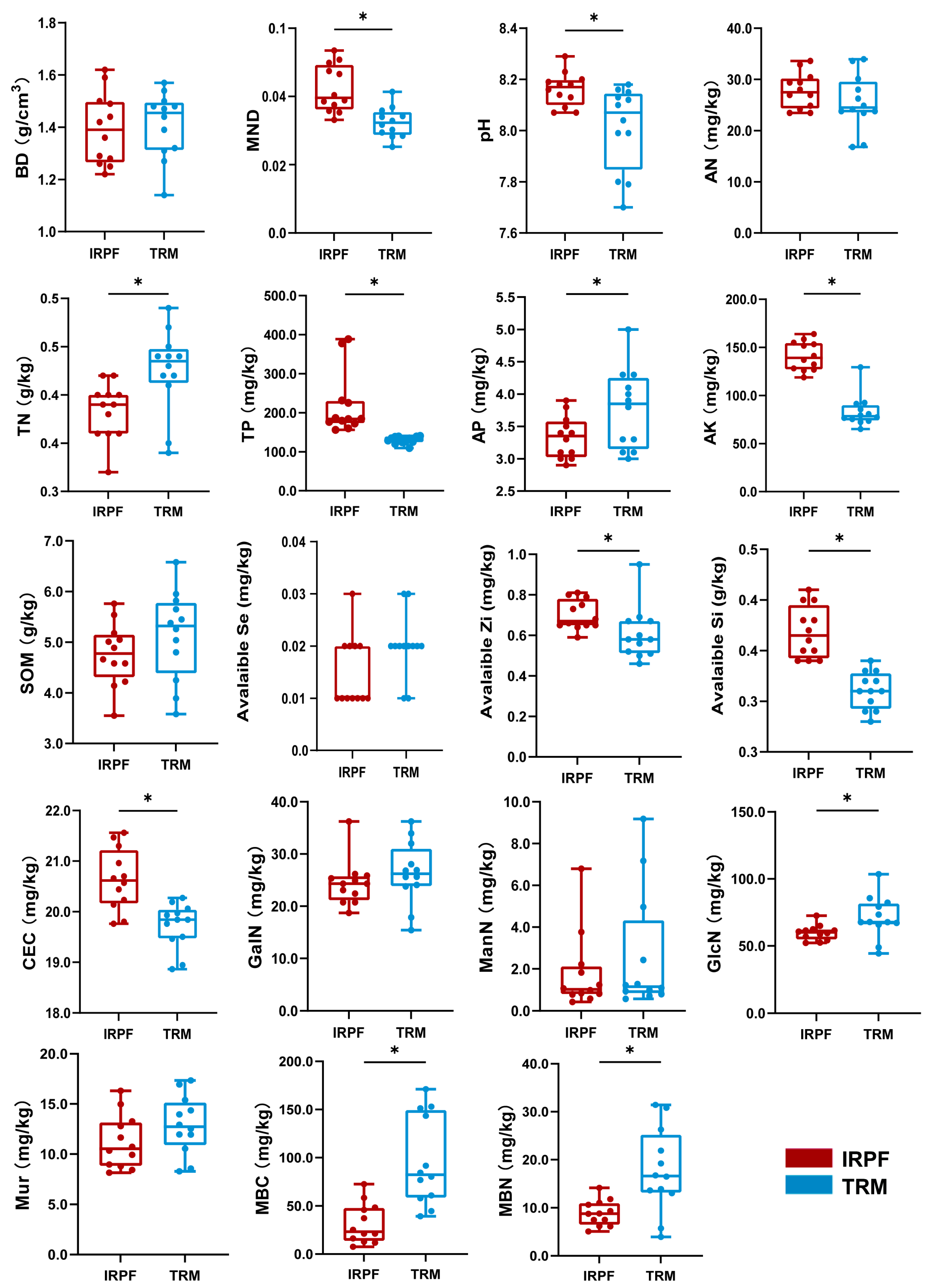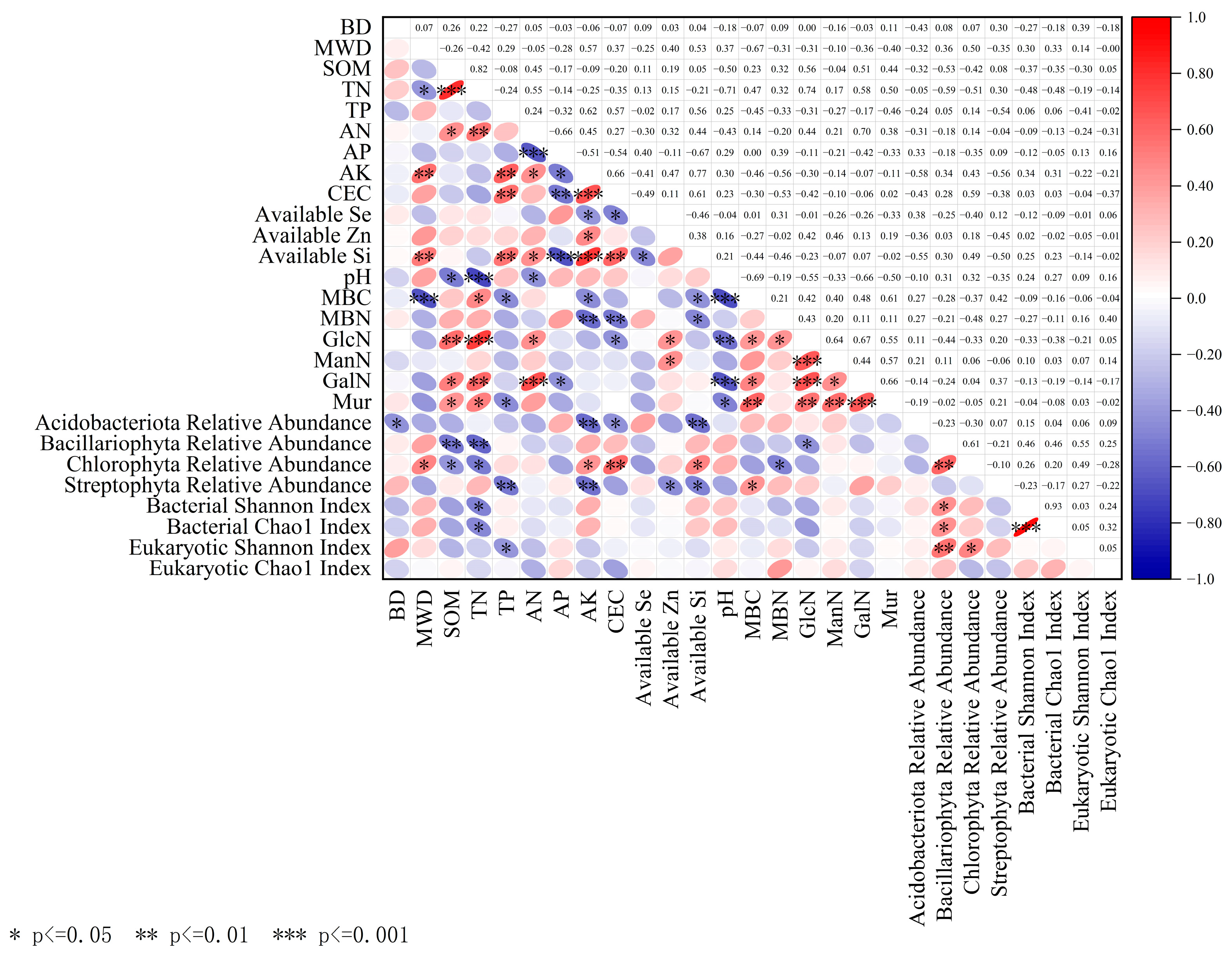 | Group | TN | GlcN | AK | Bacillariophyta Relative Abundance | TP | Bacterial Shannon Index | Streptophyta Relative Abundance | Available Zn | Bacterial Chao1 Index |