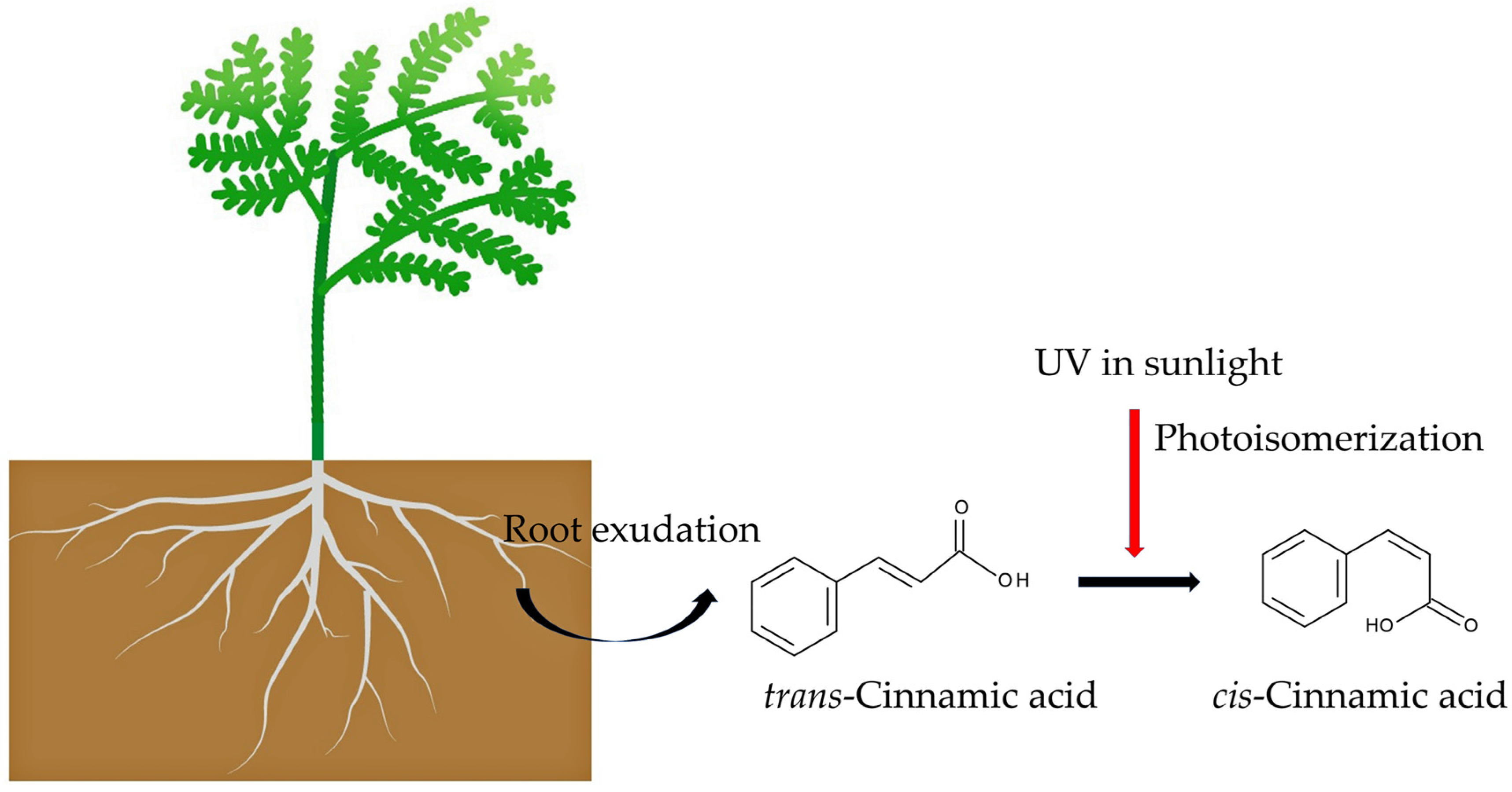 - Wong, W.S.; Guo, D.; Wang, X.L.; Yin, Z.Q.; Xia, B.; Ning Li, N. Study of cis-cinnamic acid in Arabidopsis thaliana. Plant Physiol. Biochem. 2005, 43, 929–937. [Google Scholar] [CrossRef]