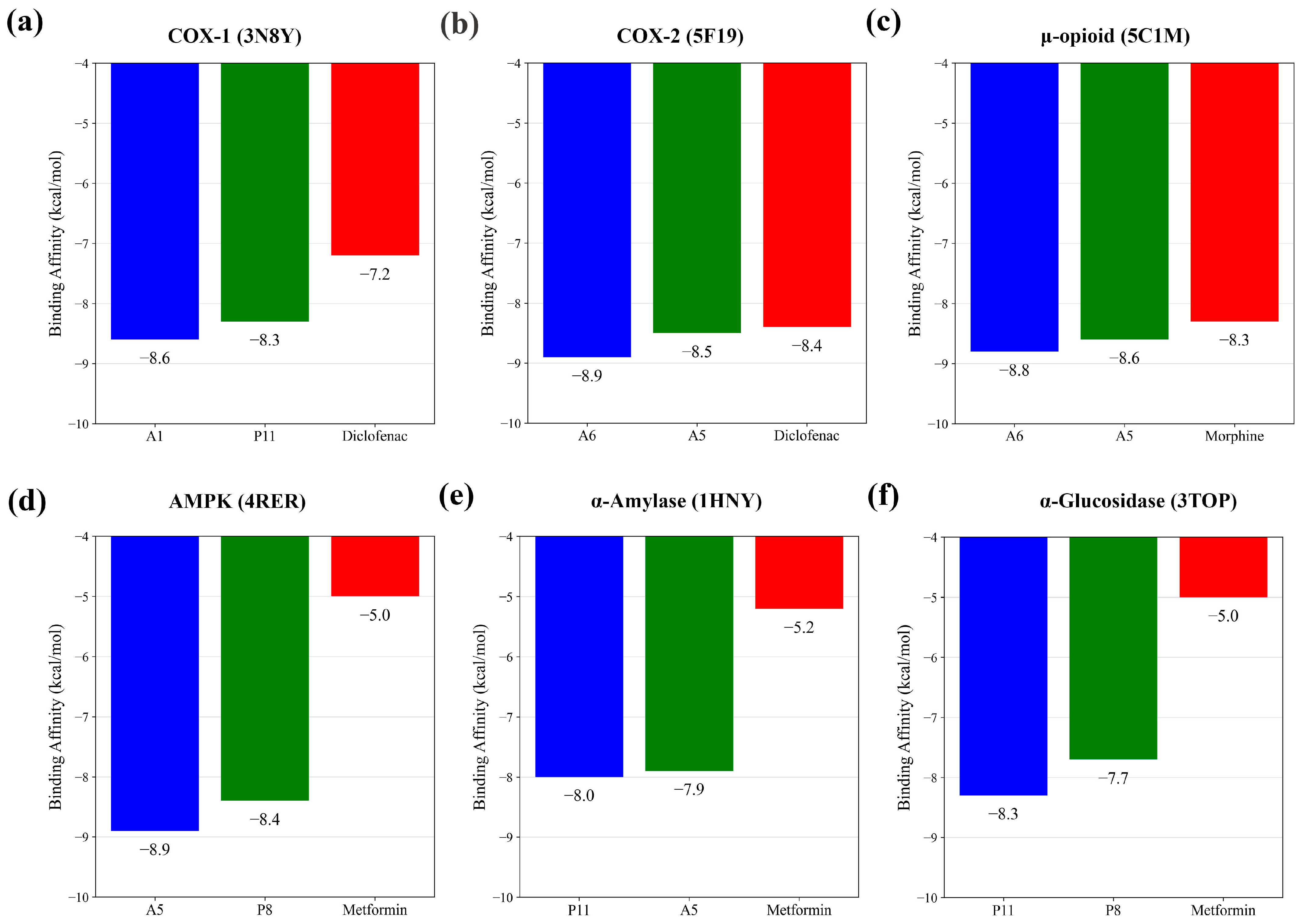 | Criteria | A1 | A5 | A6 | P8 | P11 | Diclofenac | Morphine | Metformin |