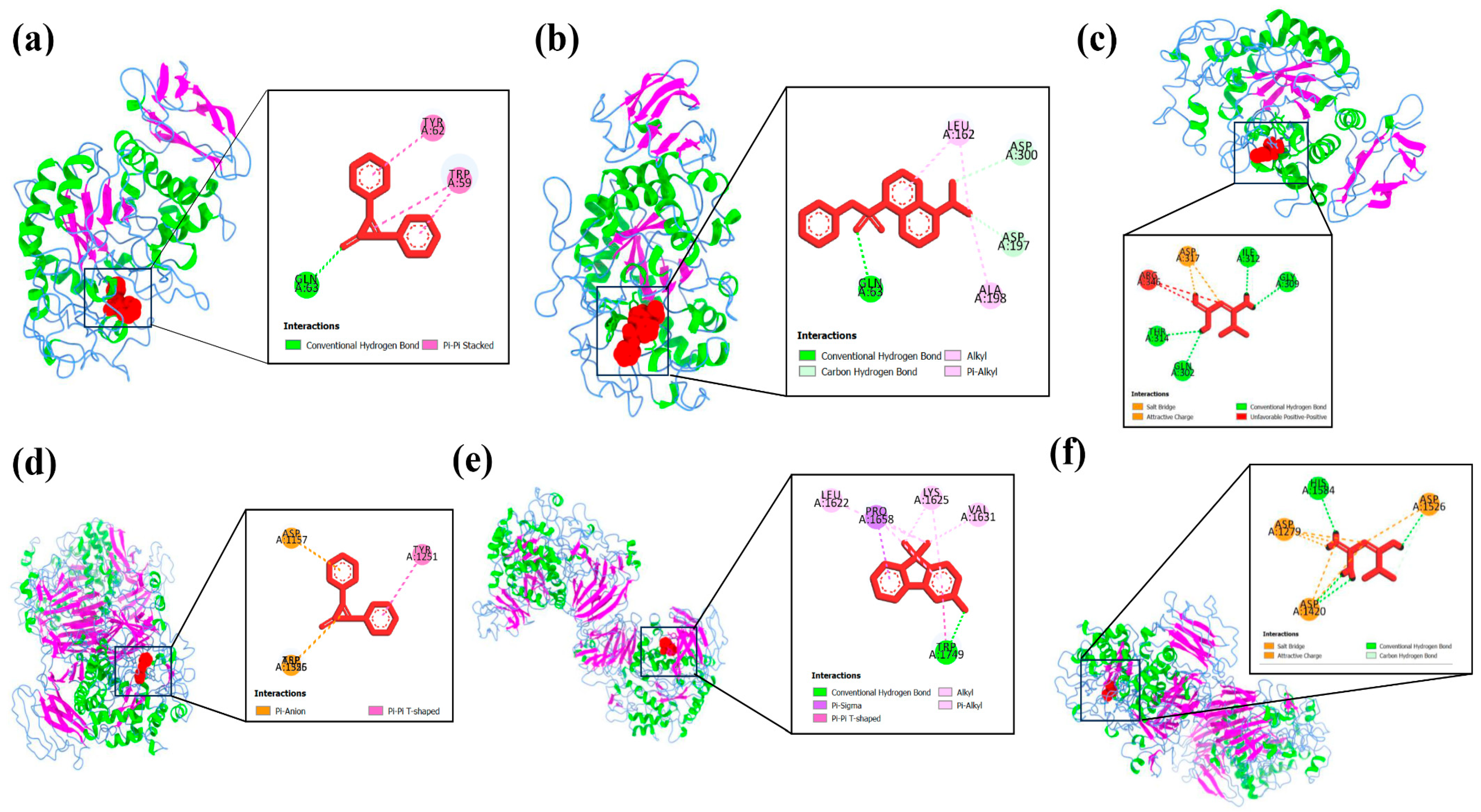 - Dallakyan, S.; Olson, A.J. Small-Molecule Library Screening by Docking with PyRx. In Chemical Biology: Methods and Protocols; Springer: New York, NY, USA, 2015; pp. 243–250. [Google Scholar] [CrossRef]