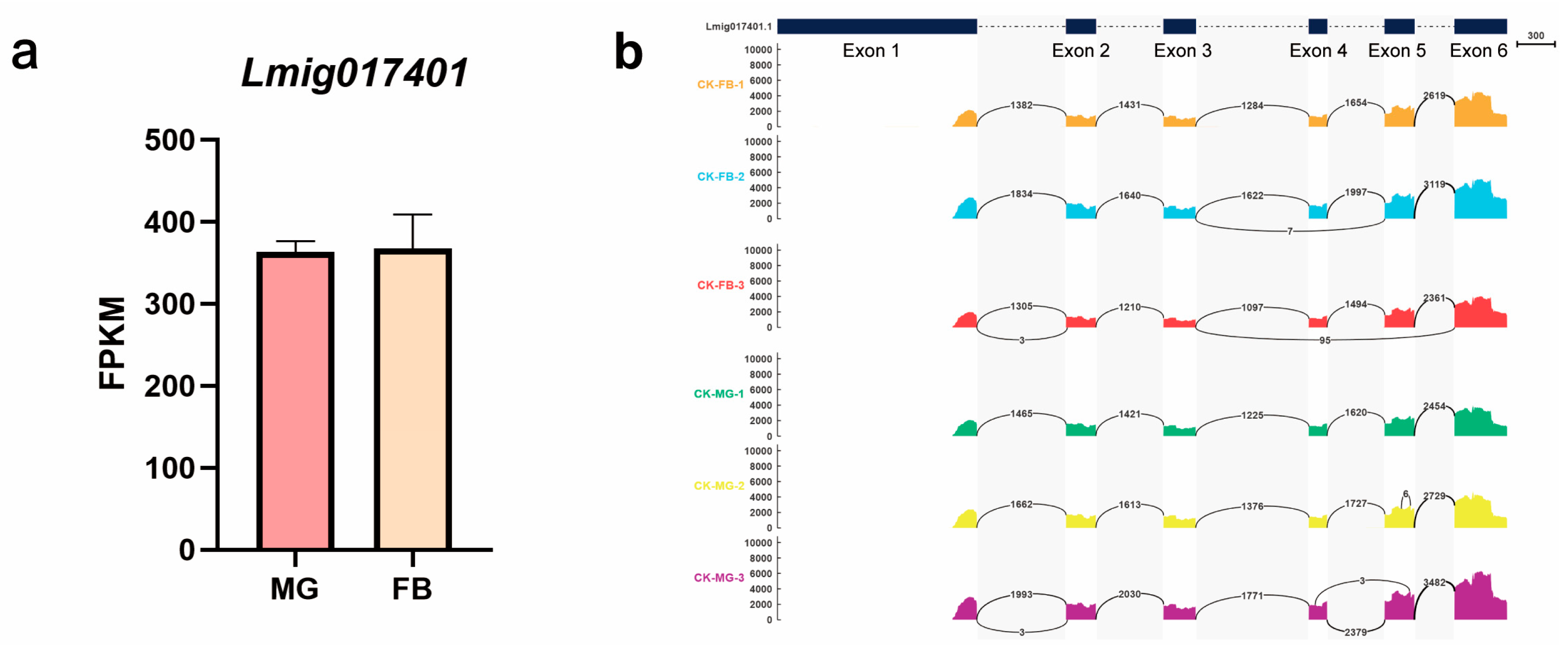 3.3. Expression Pattern and Tissue Localization of LmSCP-x