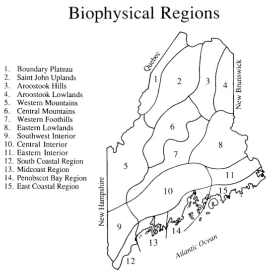 Maine Biophysical Regions, delineated on the basis of plant distributional data and climatic features [12].