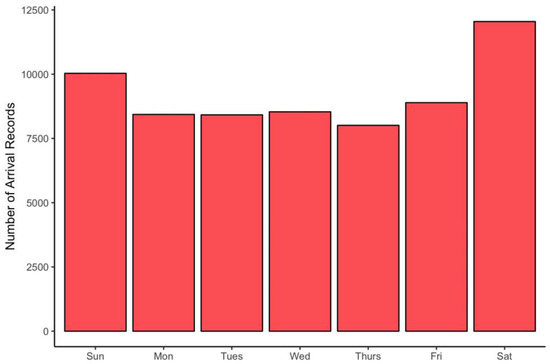 The expectation that more observations would be recorded on weekends was borne out by the data (Figure 2) although the bias toward weekend observations is relatively modest.