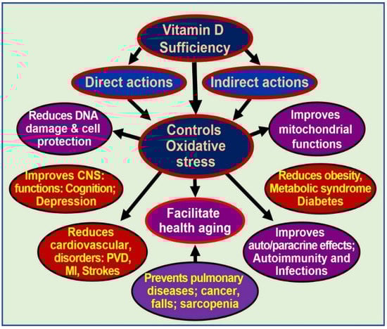 Wimalawansa, S.J. Vitamin D Deficiency: Effects on Oxidative Stress, Epigenetics, Gene Regulation, and Aging. Biology 2019, 8, 30. https://doi.org/10.3390/biology8020030