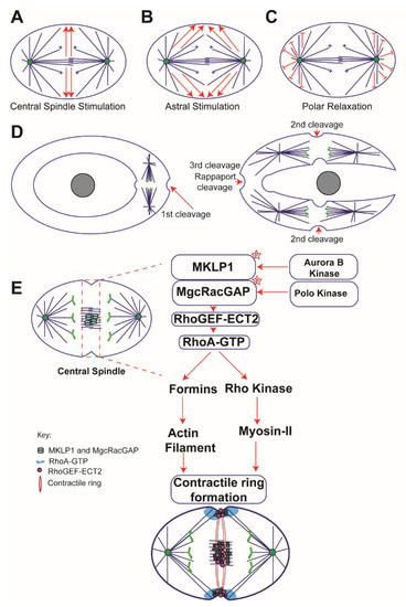 - Von Dassow, G. Concurrent cues for cytokinetic furrow induction in animal cells. Trends Cell Biol. 2009, 19, 165–173. [Google Scholar] [CrossRef]