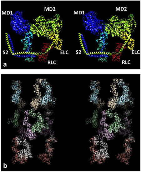 - Zoghbi, M.E.; Woodhead, J.L.; Moss, R.L.; Craig, R. Three-dimensional structure of vertebrate cardiac muscle myosin filaments. Proc. Natl. Acad. Sci. USA 2008, 105, 2386–2390. [Google Scholar] [CrossRef] [PubMed]