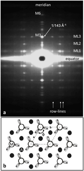 - Squire, J.M.; Knupp, C. Studies of Muscle Contraction Using X-ray Diffraction. In Muscle Contraction and Cell Motility: Fundamentals and Developments; Sugi, H., Ed.; Pan Stanford Publishing: Singapore, 2017; pp. 35–73. [Google Scholar]