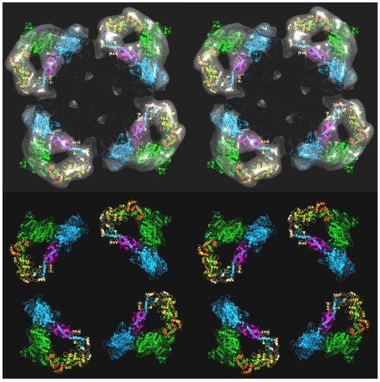 - Trabuco, L.G.; Villa, E.; Mitra, K.; Frank, J.; Schulten, K. Flexible fitting of atomic structures into electron microscopy maps using molecular dynamics. Structure 2008, 16, 673–683. [Google Scholar] [CrossRef] [PubMed]