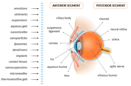 Structure of the human eye and various form of drug delivery systems.