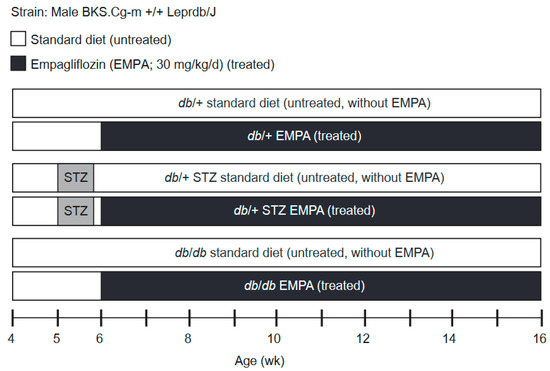 - Lee, K.A.; Jin, H.Y.; Lee, N.Y.; Kim, Y.J.; Park, T.S. Effect of Empagliflozin, a Selective Sodium-Glucose Cotransporter 2 Inhibitor, on Kidney and Peripheral Nerves in Streptozotocin-Induced Diabetic Rats. Diabetes Metab. J. 2018, 42, 338–342. [Google Scholar] [CrossRef] [PubMed]