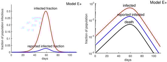 For Model E, is the only parameter that must be chosen by the modeler. We say a model is simple if the model’s equation has only one parameter, namely, the contact rate. Model E above and Model E+ below are “simple.”