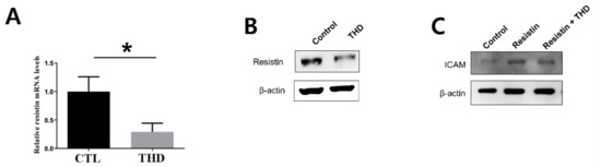 3.5. Reduction in Serum Resistin in ApoE-/- Mice and Resistin Expression of Human Monocyte