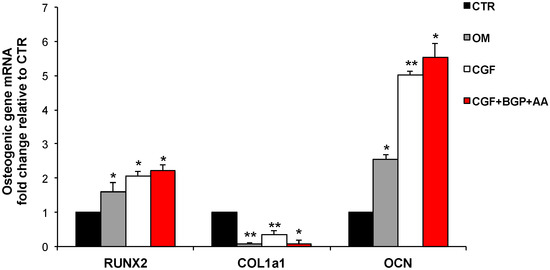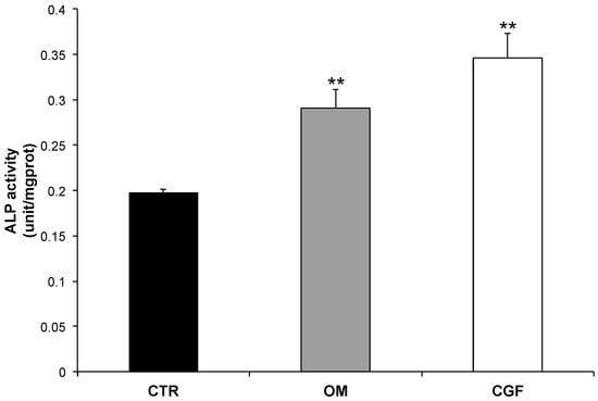 2.3. CGF Increased the Expression of Osteogenic Differentiation Markers