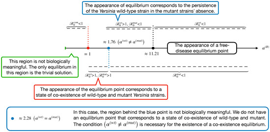 - Finally, the last equilibrium point corresponds to a state of the co-existence of wt and mut Yersinia strains. This point is achieved by supposing :withwhere Z is defined as to make the equilibrium point biologically meaningful.