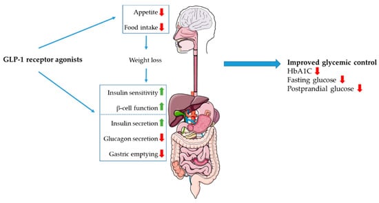 - Cornell, S. A review of GLP-1 receptor agonists in type 2 diabetes: A focus on the mechanism of action of once-weekly agents. J. Clin. Pharm. Ther. 2020, 45, 17–27. [Google Scholar] [CrossRef]