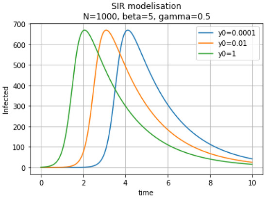 Infectious individuals for different initial conditions.