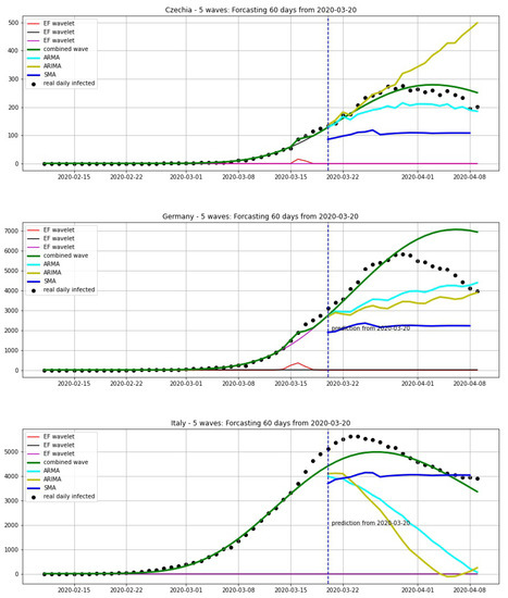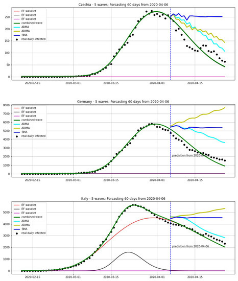 Prediction by log-normal wavelet model for Czechia, Germany, Italy from 20 October to 25 October.