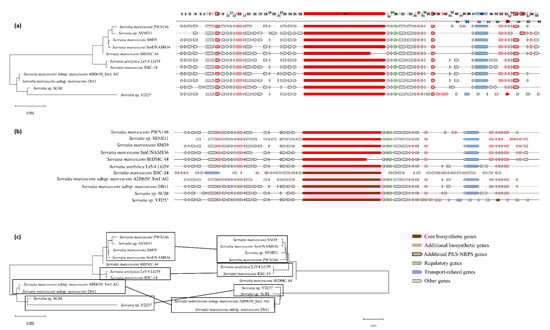 2.3. Serrawettins Biosynthetic Gene Clusters Analysis