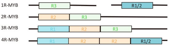 Illustration of classification and structure of MYB TFs in plants. MYB TFs with one to four MYB domain repeats that are identified in plants.