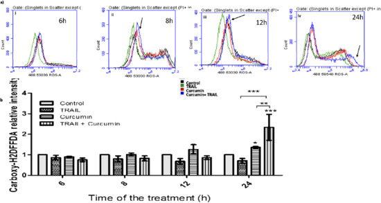 3.7. Curcumin/TRAIL Combination Treatment Induced ROS Induction