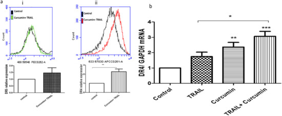 3.8. Curcumin/TRAIL Combination Treatment Induced DR4 Upregulation