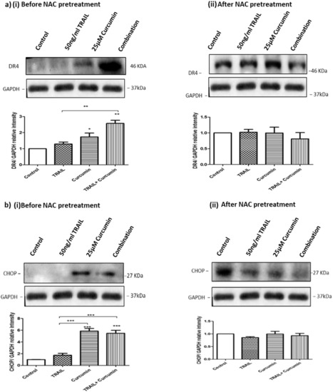 3.9. ROS Regulates Curcumin or Curcumin/TRAIL Combination-Induced CHOP Activation and DR4 Upregulation