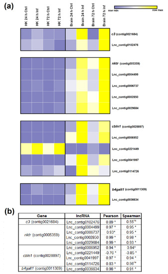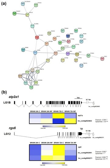 - Chen, W.; Zhang, X.; Li, J.; Huang, S.; Xiang, S.; Hu, X.; Liu, C. Comprehensive analysis of coding-lncRNA gene co-expression network uncovers conserved functional lncRNAs in zebrafish. BMC Gen. 2018, 19, 112. [Google Scholar] [CrossRef] [PubMed]