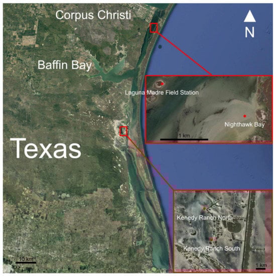 - Tunnell, J.W.J.; Judd, F.W. The Laguna Madre of Texas and Tamaulipas; Texas A&M University Press: College Station, TX, USA, 2002; pp. 1–346. [Google Scholar]