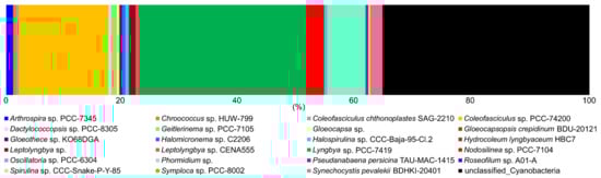 - Komárek, J.; Kaštovský, J.; Mares, J.; Joansen, J.R. Taxonomic classification of cyanoprokaryotes (cyanobacterial genera), using a polyphasic approach. Preslia 2014, 86, 295–335. [Google Scholar]