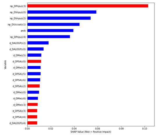 - Feature importance using SHAP values: the variables are ranked in descending order;