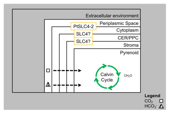 100. Nakajima, K.; Tanaka, A.; Matsuda, Y. SLC4 Family transporters in a marine diatom directly pump bicarbonate from seawater. Proc. Natl. Acad. Sci. USA 2013, 110, 1767–1772. [Google Scholar] [CrossRef]