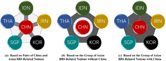 Case A: China strengthens its trade collaboration with the others, respectively—As in the initial stage of BRI, China needs to establish mutually beneficial and collaborative relations with one country after another, in order to promote its transfer of excess production capacity.