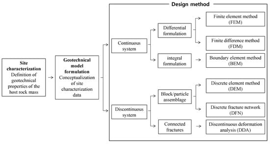 Design process of engineering problem for rock mass with an emphasis on numerical methods.