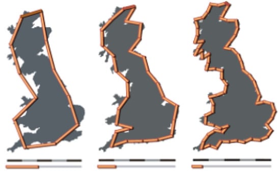 - Mandelbrot, B. How long is the coast of britain? Statistical self-similarity and fractional dimension. Science 1967, 156, 636–638. [Google Scholar] [CrossRef]