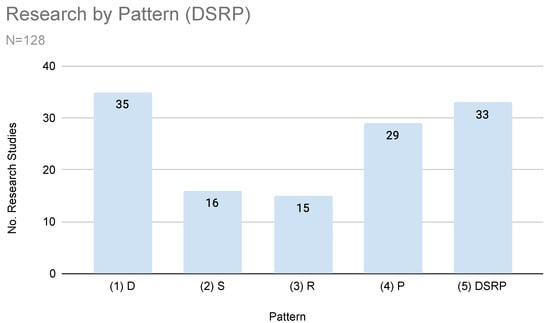 Cabrera’s 2021 review of research [12] builds upon two previous literature reviews [1,6], constitutes a proverbial “tip of the iceberg”, and is part of an accumulating body of evidence in support of the predictions made by DSRP Theory generally. Figure 1 shows the methodological distribution of this research and Figure 2 shows the distribution of these studies across DSRP pattern.