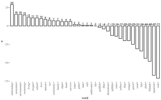 After being primed with the systems pattern of mind, the participants used more systemic language. They were more focused on part–whole aspects of the fish tank image. After a very short (<1 min read) the participants increased their focus on systems. Table 17 lays out the top 40 words for the PreS and the PostS responses. It also shows their occurrences and percentage of total occurrences.