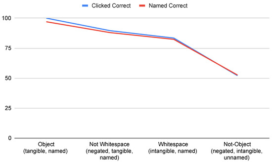 - This suggests that those who incorrectly clicked did so in error as they completed the task by naming what they clicked on correctly.
