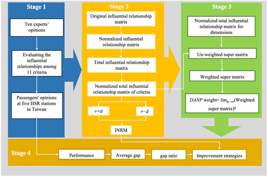 This study has the following limitations. First, it only considers the opinions of Taiwanese experts to deconstruct the influence relationships and one must be cautious when generalizing the results to HSR stations in other countries/regions. The proposed index framework and hybrid MADM model should be used to evaluate other HSR stations to confirm the validity of the results. Second, this study only surveys the passengers at five major HSR stations in Taiwan; future studies should look at analyzing more passengers. This study also does not consider the fuzzy semantics that go into people’s decision making; future studies could further expand on that. Finally, since the study aimed to explore the complex relationship between the dimensions/criteria in this study, a cost–benefit analysis of inputs was not conducted using multi-objective attribute decision-making methods.