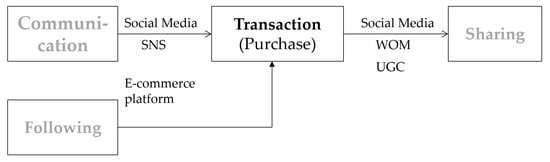 Transaction. These studies seek to explain how UGCs on a social commerce platform lead to generating customers’ intention to buy or how customers’ purchase decisions are made in a social commerce context [].