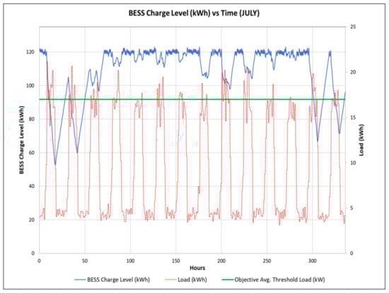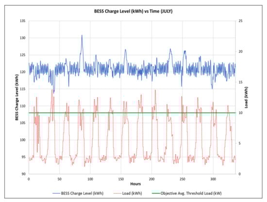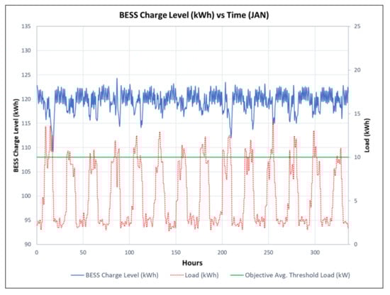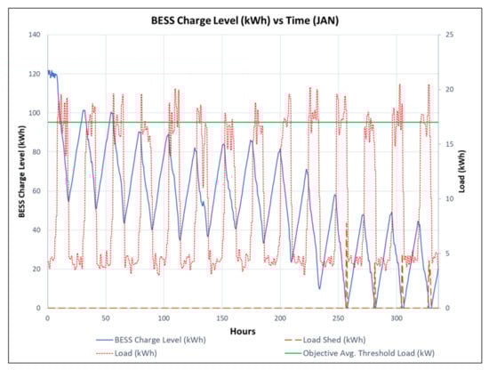 Common load data were drawn from previous research utilizing Naval Support Activity (NSA) Monterey. For this research, a small office building of approximately 5500 sqft (approximately 510 m) with an average load of 2.8 kW and max load of 7 kW was used for initial analysis and design []. The threshold value for average load was increased based on common military diesel generator sizing as well as to account for variability in small DoD critical loads. A final threshold value of a 10 kW average load was chosen as the basis of comparison during the feasibility study.