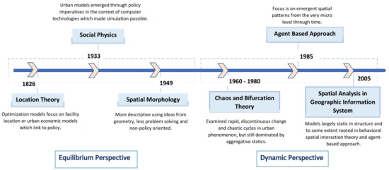 The main urban theories that have dominated urban modeling are based on following types of equilibria [10]. The timeline of these theories is shown in Figure 3.