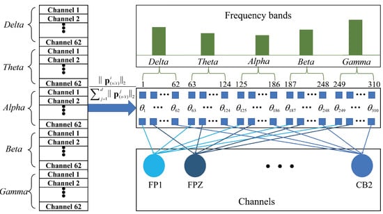 where a = 1, 2, 3, 4, 5 denote the Delta, Theta, Alpha, Beta, and Gamma frequency bands, respectively. l = 1, ⋯, 62 denote the 62 channels, which are FP1, FPZ, ⋯, CB2.