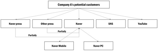 Potential customers basically approach via press, Naver, YouTube, and SNS. Some customers who saw an advertisement in the press tend to go to Naver and search it online. This indicates that, since A does not link their website in the press for publicity, customers have to do the search again. The flow of potential customers who may access the website through Company A’s advertisement is presented in Figure 1.