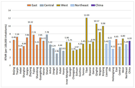 RTMR (per 100,000 inhabitants) intervals in 31 provinces in 2010.