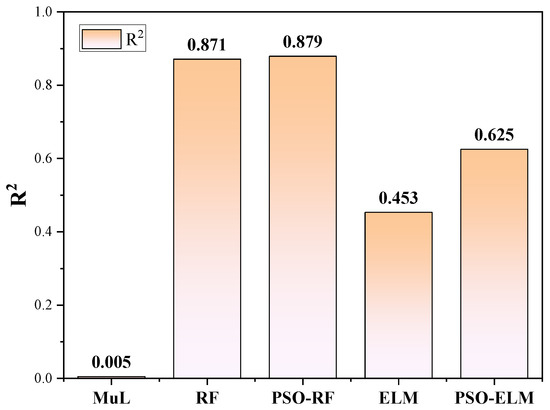 After comparing the feature importance of each variable before and after optimization, it is not difficult to find that on the whole, the feature importance ranking and proportion of each variable are the same, and only some variables have slight changes, which proves that the model based on the random forest algorithm has certain characteristics of stability. In addition, compared with the relative average variable weights before optimization, the weights of variables after optimization are more prominent, which proves that the optimization has a certain effect, but the specific effect still needs to be further studied. Although random forest can solve the problem of regression prediction, it cannot solve the problem of result prediction outside the scope, and a support vector machine can handle this problem better. In addition, this paper also uses a genetic algorithm to optimize the support vector machine algorithm. The explanatory power of each regression model established with the training set data is shown in Figure 11.