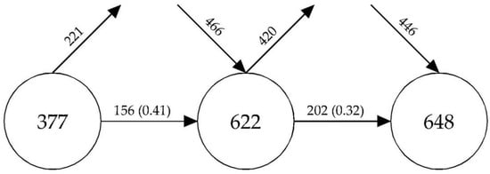 The scientific mapping software SciMAT [70] was used for the bibliometric analysis. This software synthesizes most of the tools used in scientific mapping, such as strategic maps and the construction of thematic networks, and also allows for the creation of longitudinal maps, which is one of the main objectives of this work. The information provided by the WoS database was imported into the software used, and we proceeded as follows: the author’s keywords and the keywords from the source represented the basic unit of analysis; for the construction of the thematic networks, co-occurrences were used. To normalize the network, the equivalence index was used as a measure of similarity; finally, the scientific maps of topics and their corresponding networks were based on the simple centre clustering algorithm.