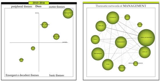 Evolution of the themes for the period of 2010–2016 and a thematic network of the Management cluster. Source: Prepared by the authors on the basis of SciMAT data.