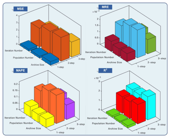 (c) From the adjustment of ARchIvemax, the stability of the APCP system can also be verified. Except for in the two-step prediction of the dataset in Cd, the error evaluation index of the APCP system has no significant fluctuation. Even the results in the 3-step prediction emerge with superior stability .