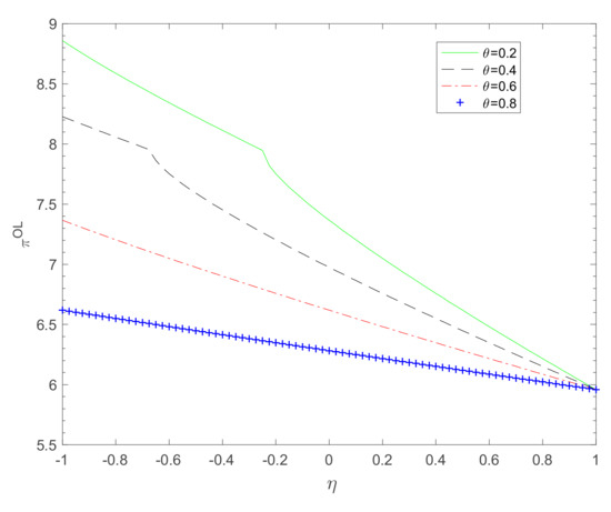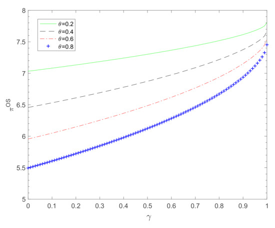 Meanwhile, it can be seen from Figure 4 that when is fixed, or as online customers continue to shift to offline channels (i.e., they transfer for other reasons), profit will decrease to a certain extent. The transfer of more online customers towards the offline platform will not only cause congestion in offline channels and reduce the shopping rate of customers, but also cause merchants to invest in more capacity at the ordering stage. This will lead to increased cost at stage one, which will cause a continued decline in profit. When all online customers transfer to offline channels, i.e., when , the merchant will obtain the same minimum profit.