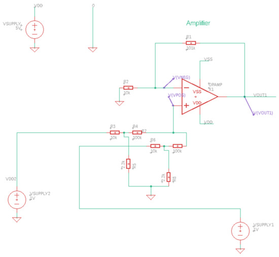 The relationship in (2) is derived by applying Kirchoff’s current law [85] at the summing junction while keeping R1 and R2 equal: